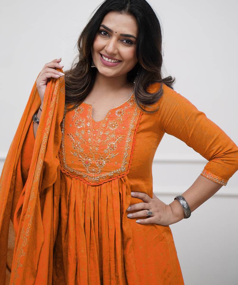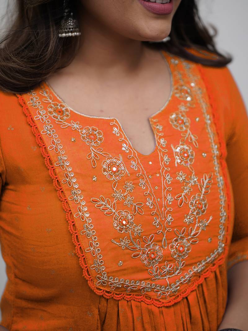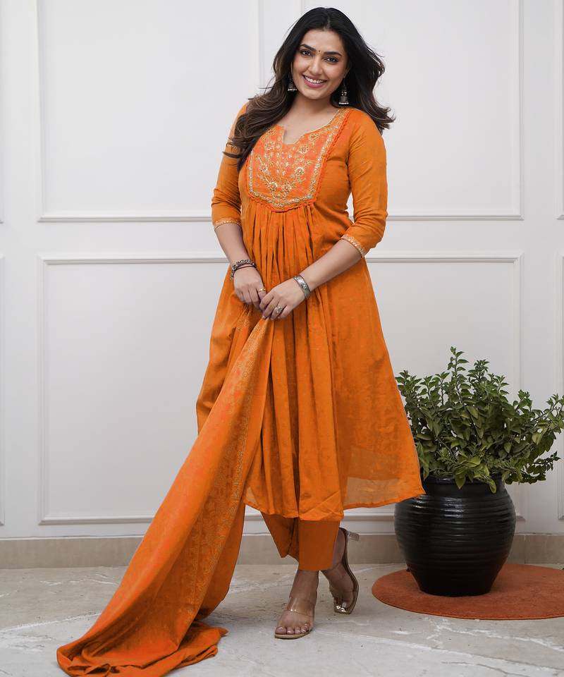 | Product Name | Orange Cotton Embroidered Straight Kurta Pant And Dupatta Set | |