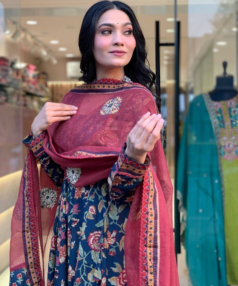 | Product Name | Blue Cotton Printed Flared Kurta Palazzo And Dupatta Set | |