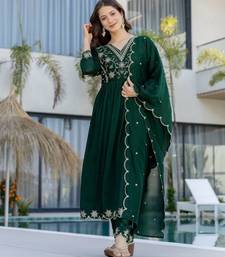 Green embroidered vichitra silk flared anarkali pant and dupatta set