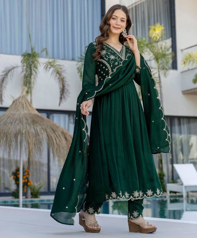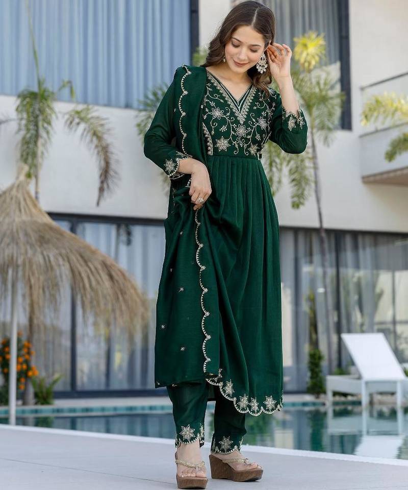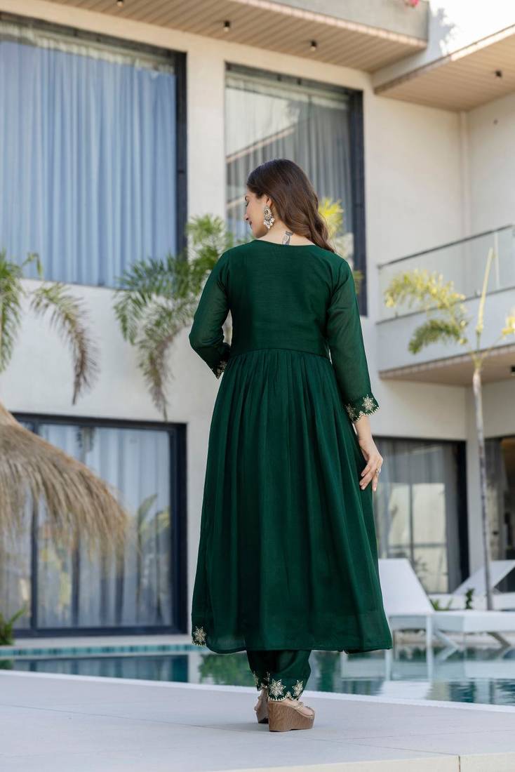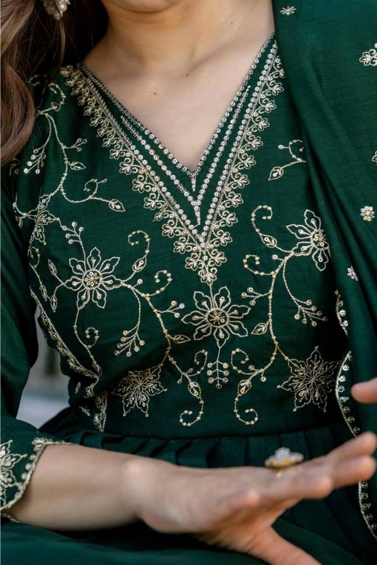 | Product Name | Green Embroidered Vichitra Silk Flared Anarkali Pant And Dupatta Set | |