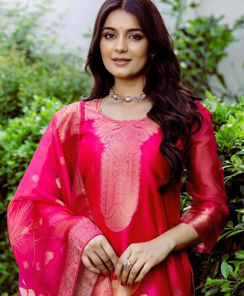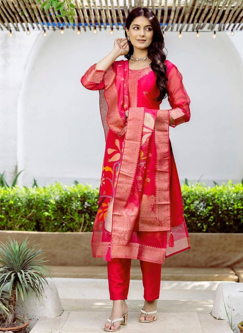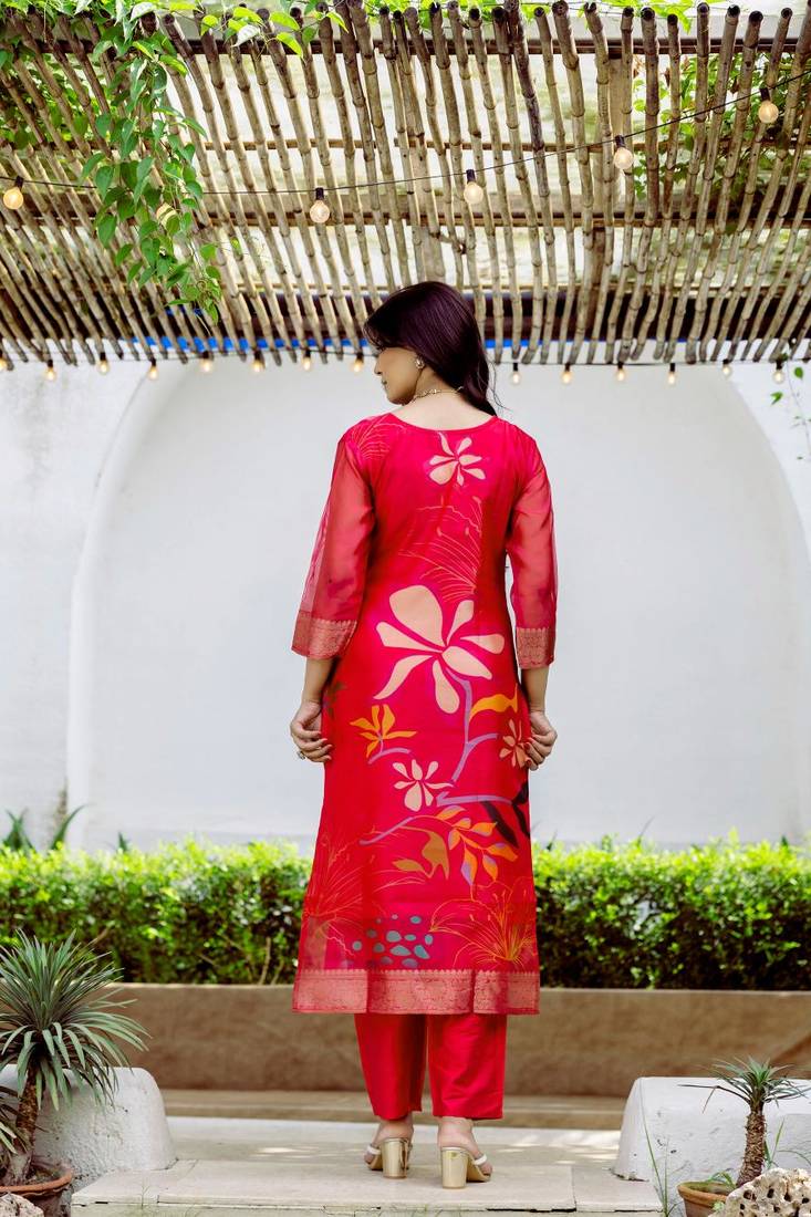 | Product Name | Red Printed Jacquard Organza Straight Kurta Pant And Dupatta Set | |