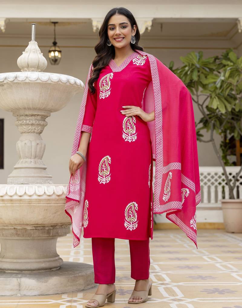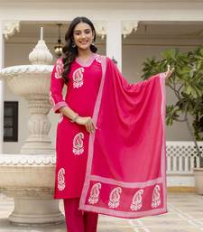 | Product Name | Pink Rayon Printed Straight Kurta Pant And Dupatta Set | |