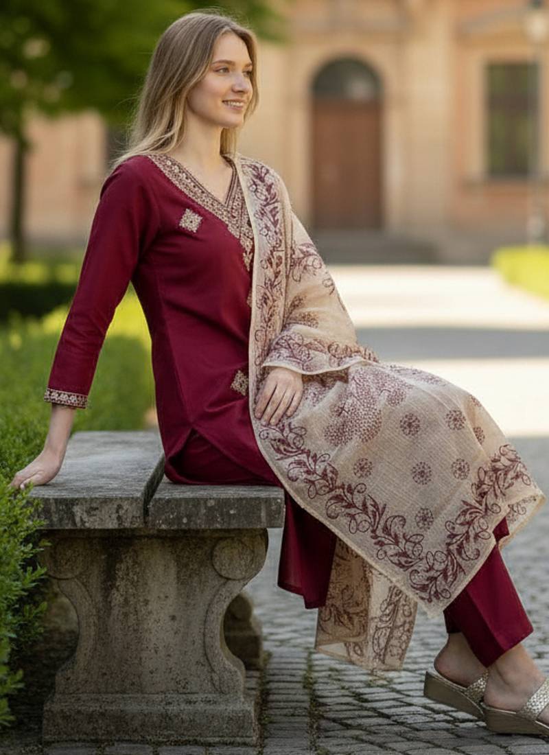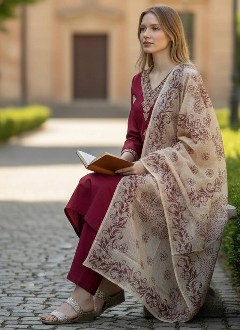| Product Name | Maroon Rayon Embroidered Straight Kurta Pant And Dupatta Set | |