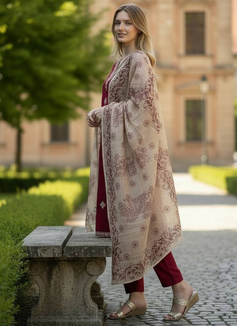 | • | Dupatta | : | Color- Light Beige / Fabric- Cotton |