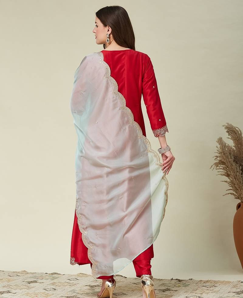 | Product Name | Pink Vichitra Embroidered Flared Anarkali Pant And Dupatta Set | |