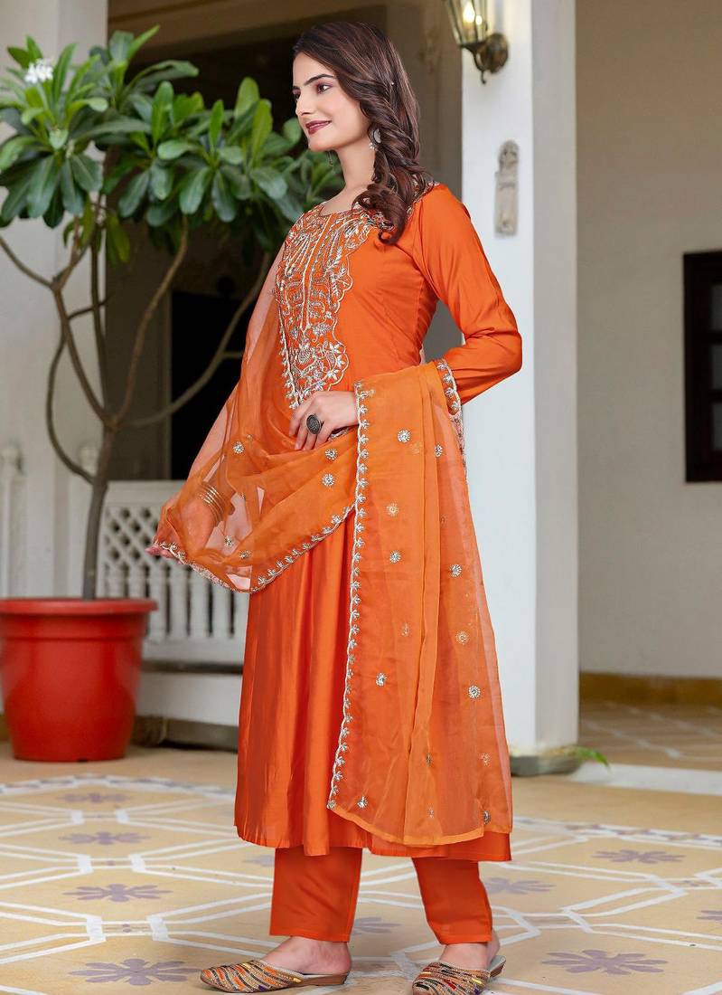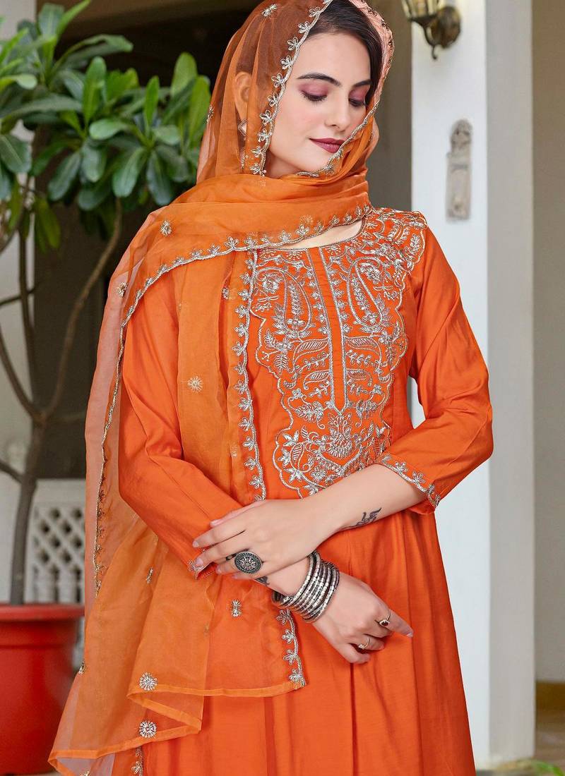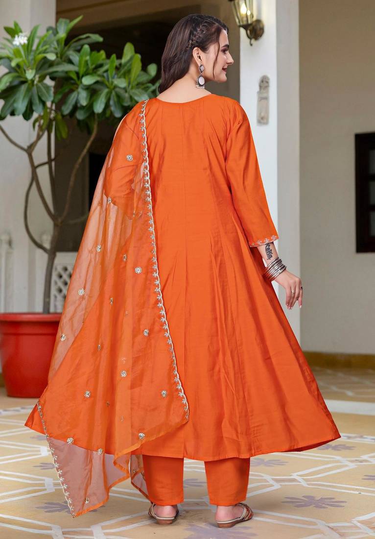| Product Name | Orange Vichitra Embroidered Flared Anarkali Pant And Dupatta Set | |