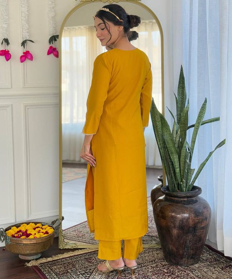 | Product Name | Yellow Viscose Embroidered Straight Kurta With Pant And Dupatta Set | |