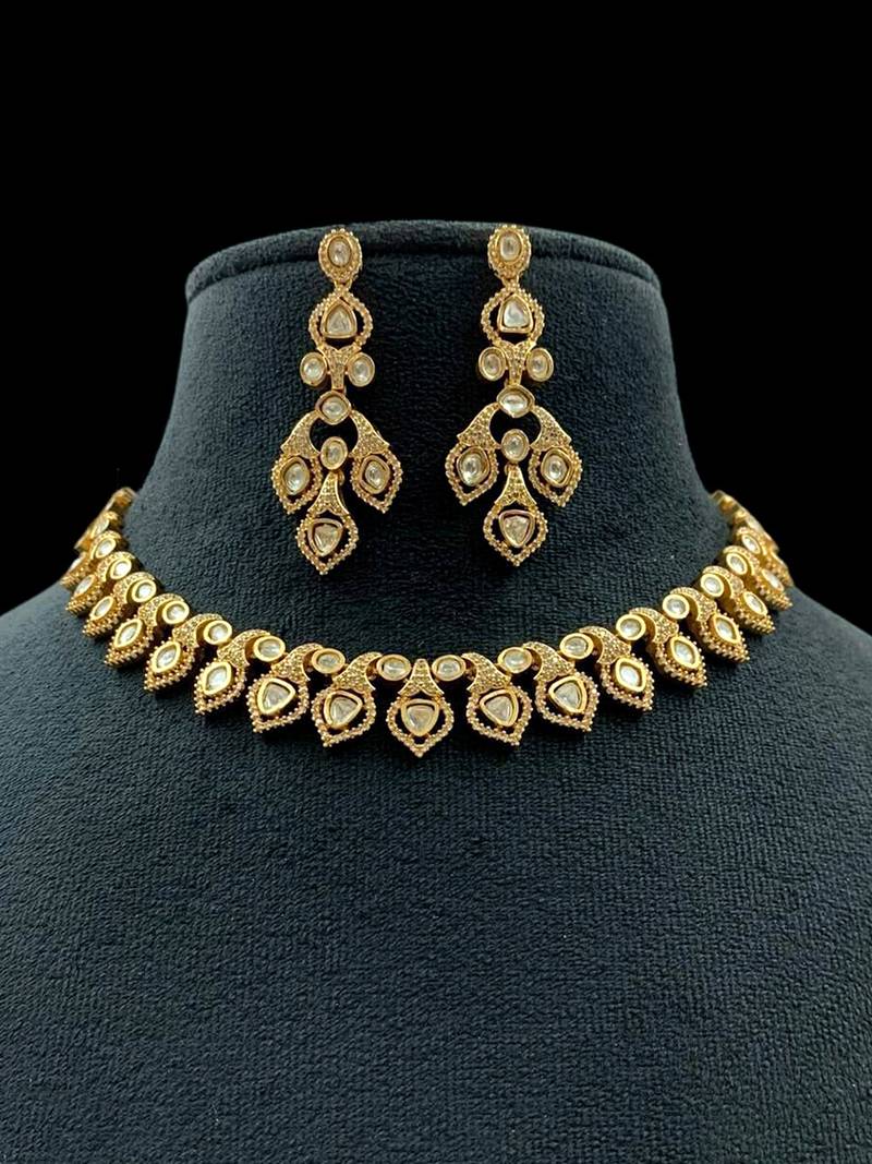 Product Name | Elegant Gold Plated Kundan Necklace & Earrings Set Traditional Gold Finish Jewelry By Treemoda | |