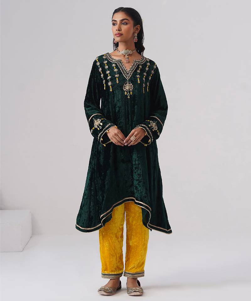This Black Embroidered Velvet Kaftan Exudes Luxurious Elegance And Timeless Sophistication. Crafted From Rich, Soft Velvet, It Features Intricate Embroidery That Adds A Regal, Refined Touch. Perfect For Evening Gatherings And Festive Occasions, It Offers A Graceful Flow, Comfortable Fit, And Effortlessly Glamorous Appeal.