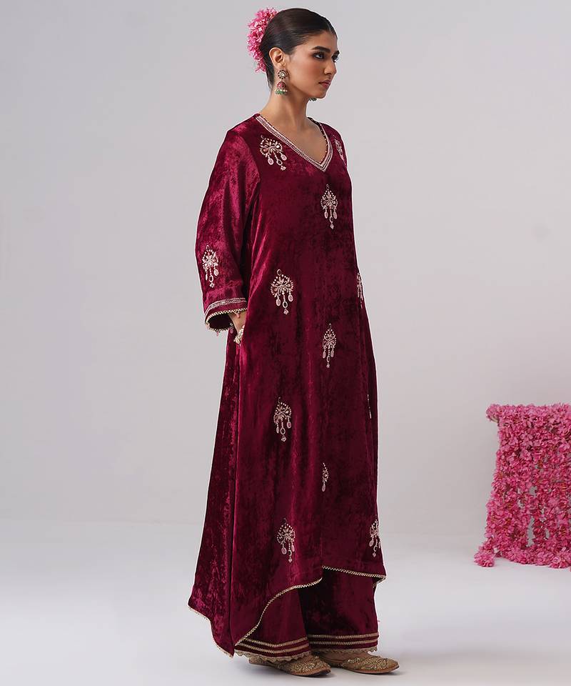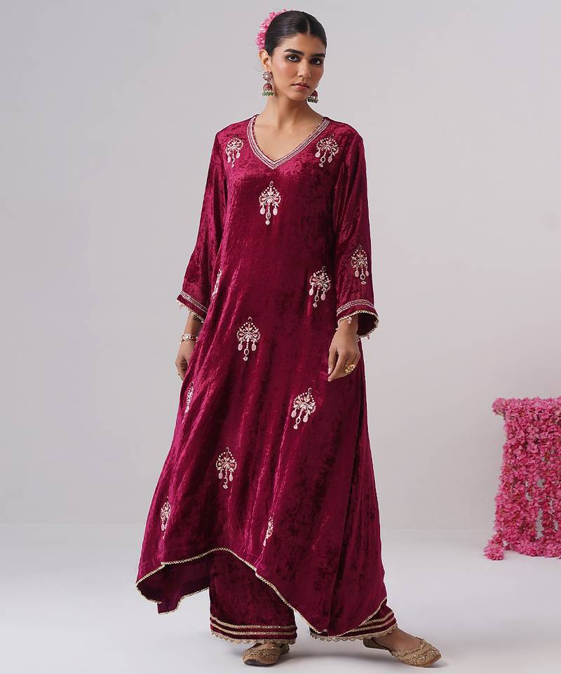 | Product Name | Pink Embroidered Velvet Kurta Set | |