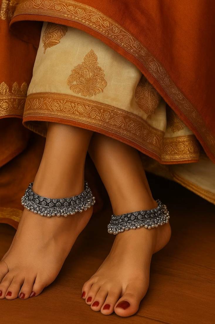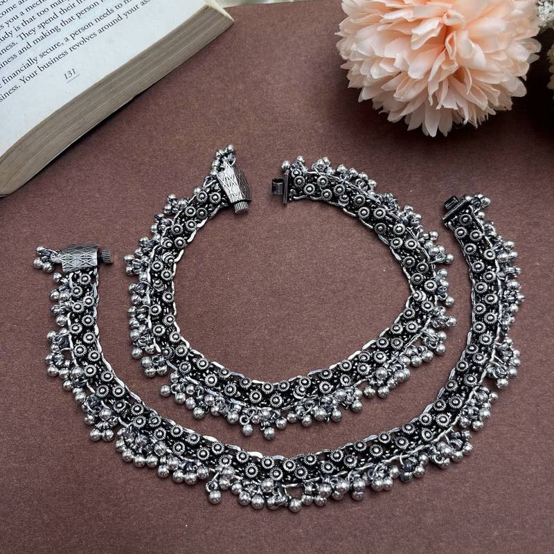 Product Name Oxidized Silver Ghungroo Anklets: Boho Indian Ethnic Jewelry