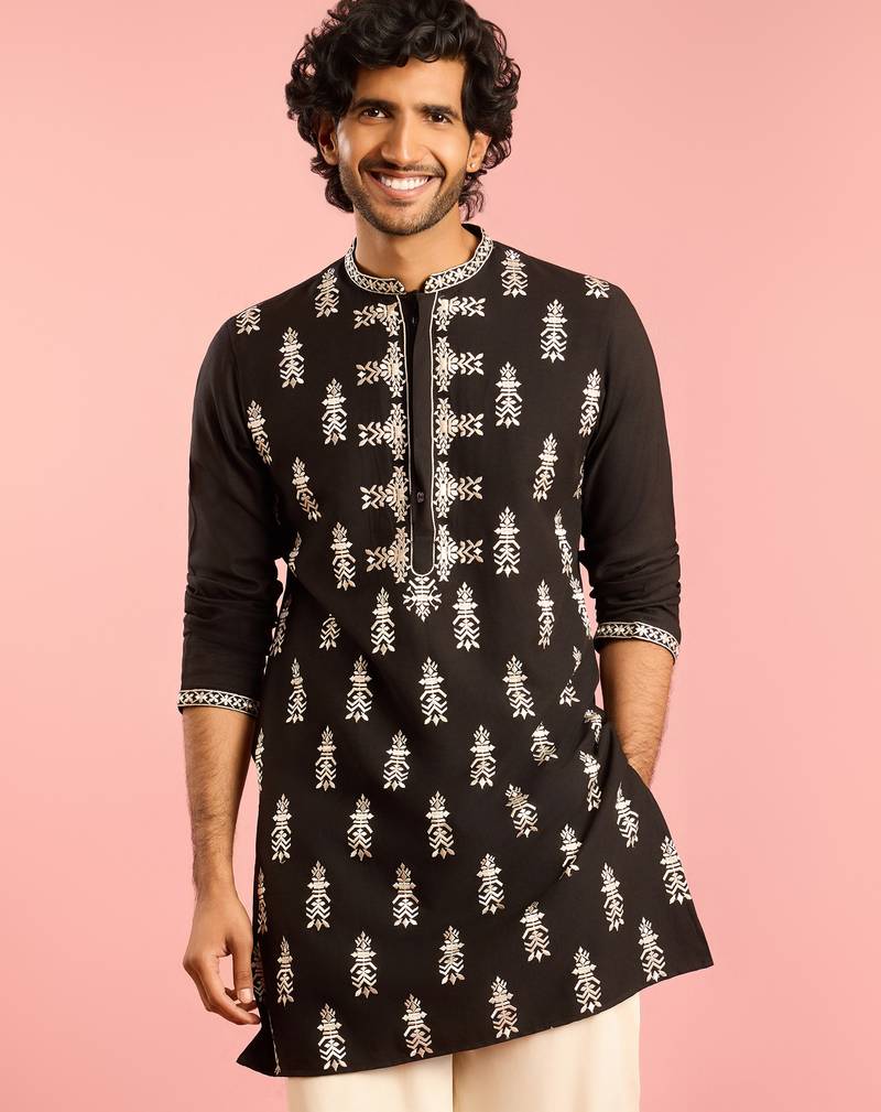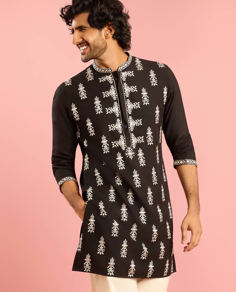 Black thread embroidered mustang kurta | wedding eid festive wear