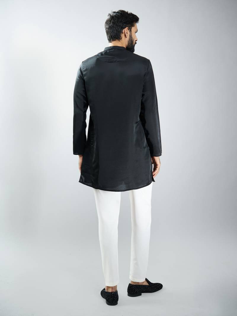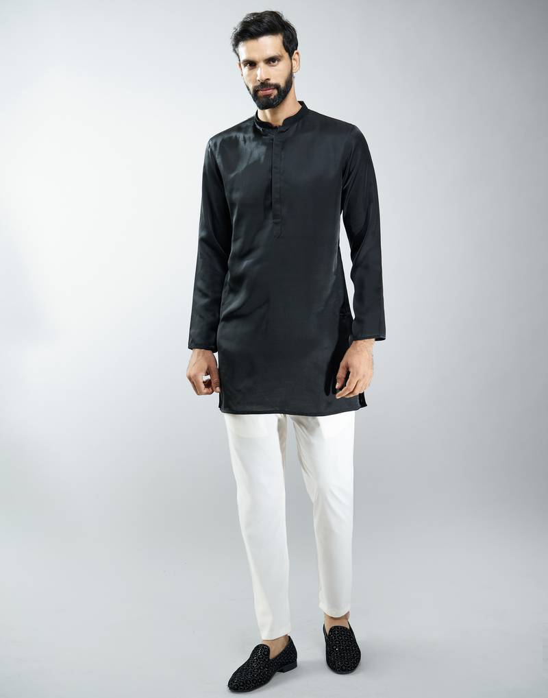 | Product Name | Black Silk Blend Kurta With Cream Cotton Lycra Pyjama | |