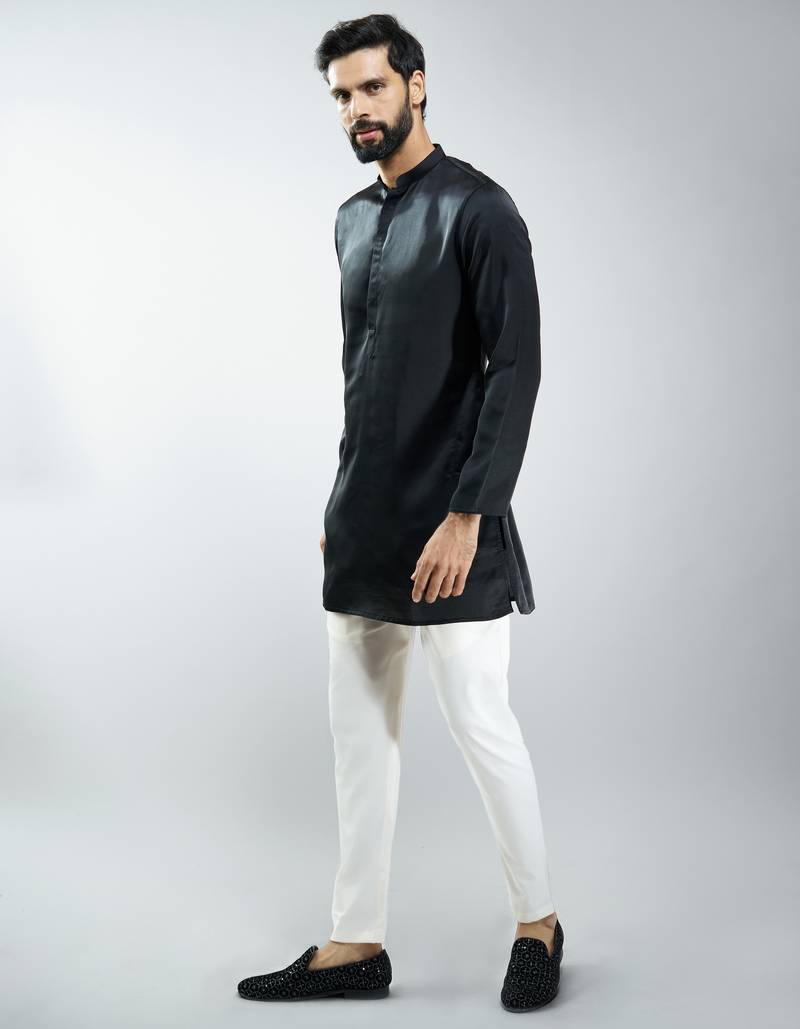 Black silk blend kurta with cream cotton lycra pyjama