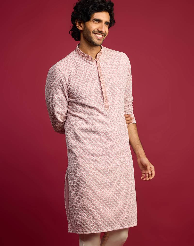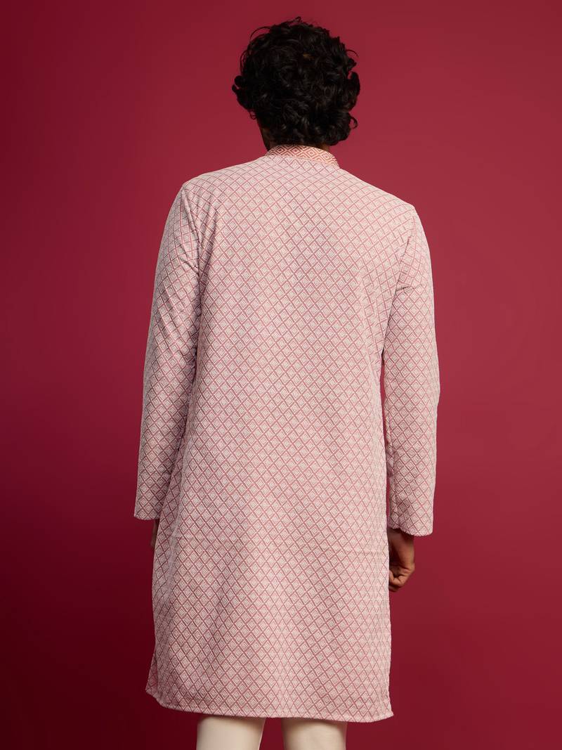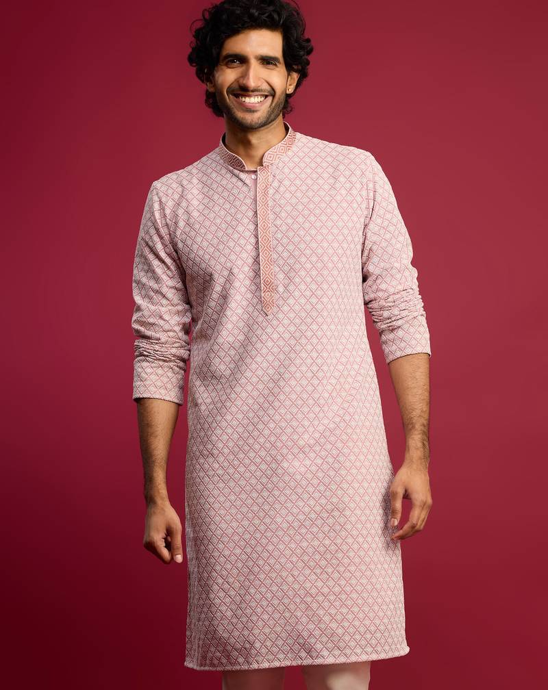 | Product Description | Stand Out At Every Festive Gathering With This Vibrant Pink Long Kurta From Vastramay. Made From Premium Faux Georgette, The Kurta Showcases All Over Geometric Thread Embroidery In The Fox Shifli Cube Style, With Carefully Crafted Embellishments On The Collar And Concealed Placket. The Straight Silhouette, Mandarin Collar, Side Slits, And Full Sleeves Ensure A Sharp And Refined Ethnic Profile. Full Crepe Lining Provides Structure And An Elegant Drape, While Two Inseam Pockets Add Practical Convenience. A Statement Piece For Weddings, Diwali, Navratri, Festive Parties, And Summer Celebrations. Care Instructions: Dry Clean Recommended. |
