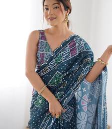 Blue digital printed georgette saree set