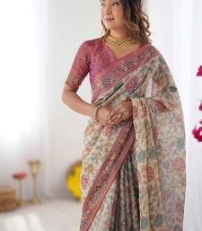 | Product Name | Blush Cream Handloom Linen Cotton Saree With Artistic Bird Motif Pallu | |