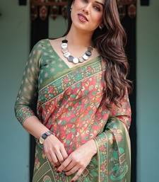 | Product Name | Bottel Green Handloom Cotton Linen Saree With Elephant Motifs And Floral Detailing | |
