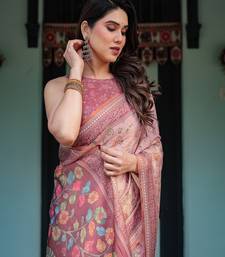 | Product Name | Dusty Pink Handloom Cotton Linen Saree With Floral Motifs And Artistic Pallu | |