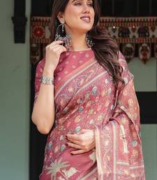 | Product Name | Dusty Rose With Floral Motifs Linen Cotton Handloom Printed Saree, Pastoral Scene Pallu, And Tassels | |