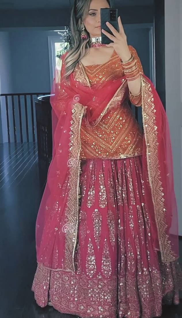 | • | Dupatta | : | Color- Pink / Fabric- Faux Georgette |