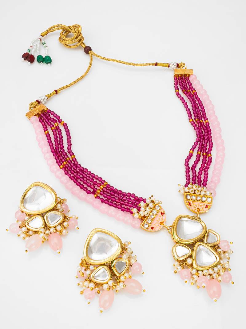 | Product Name | Pink And Maroon Color Handmade Kundan Moti Mala Jewellery Set With Pair Of Earrings | |