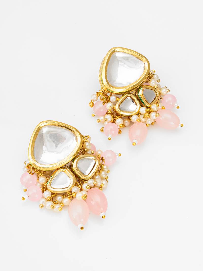 Pink and maroon color handmade kundan moti mala jewellery set with pair of earrings