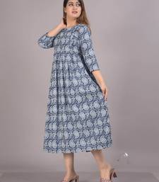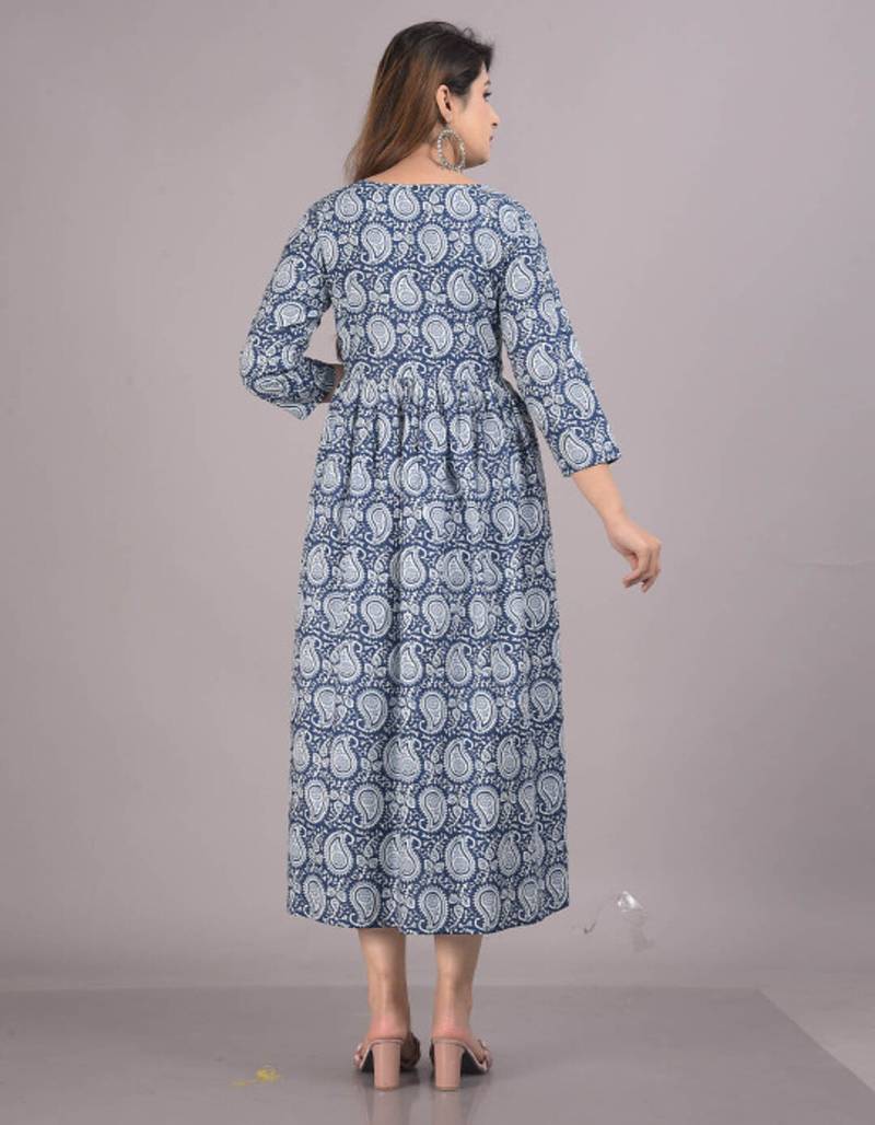 Aarti fashion blue women printed fit and flare maternity ethnic dresses stitched