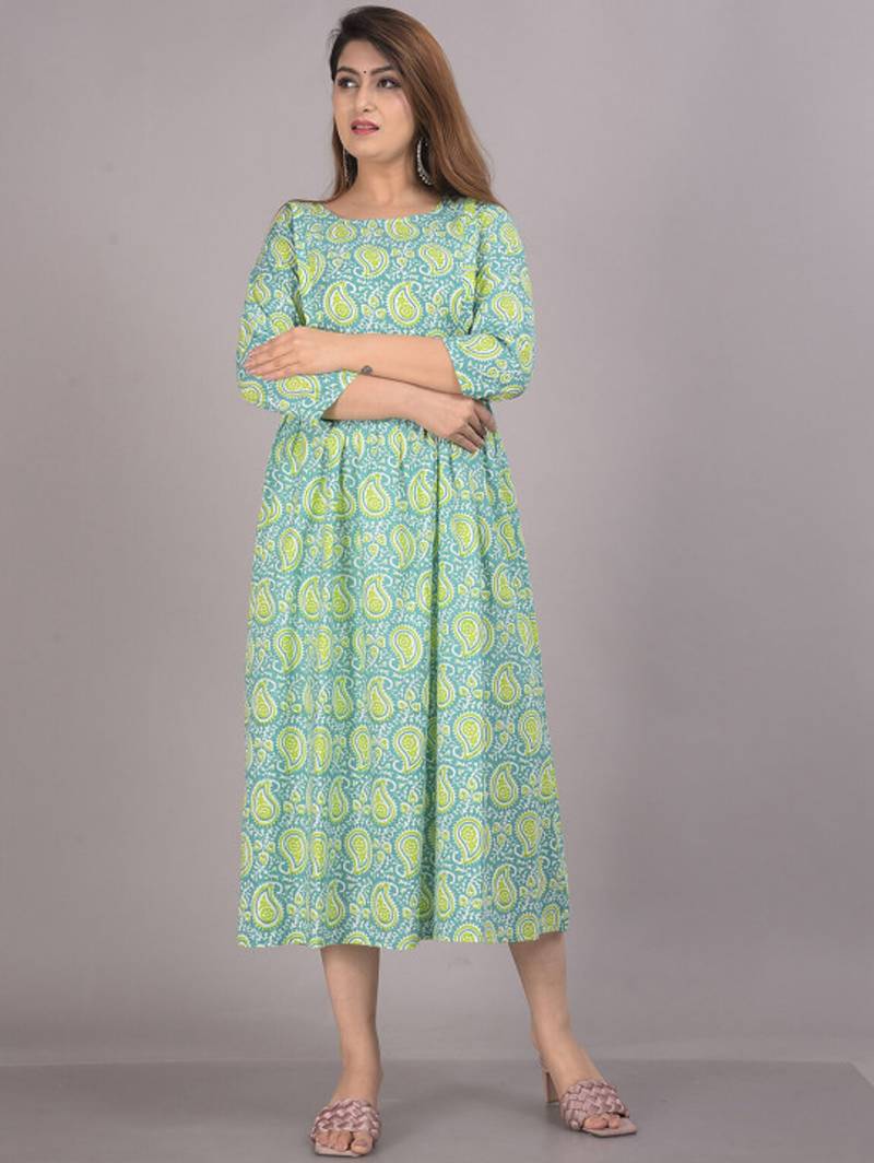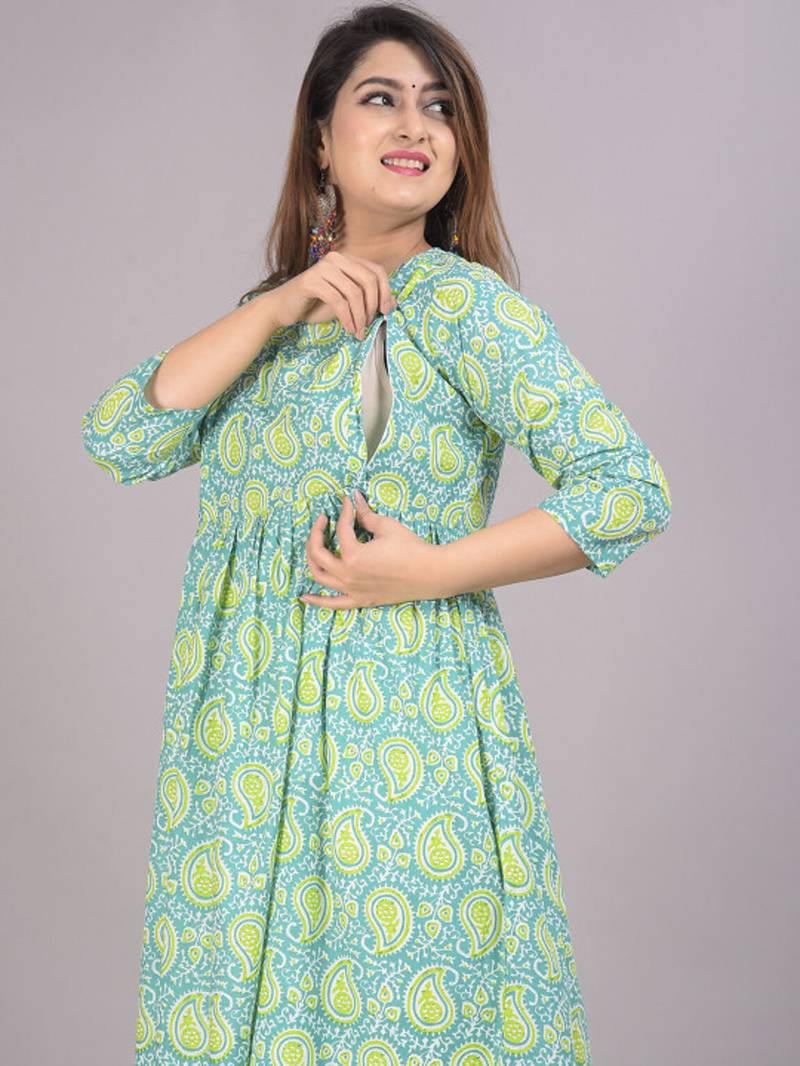 Aarti fashion green women printed fit and flare maternity ethnic dresses stitched