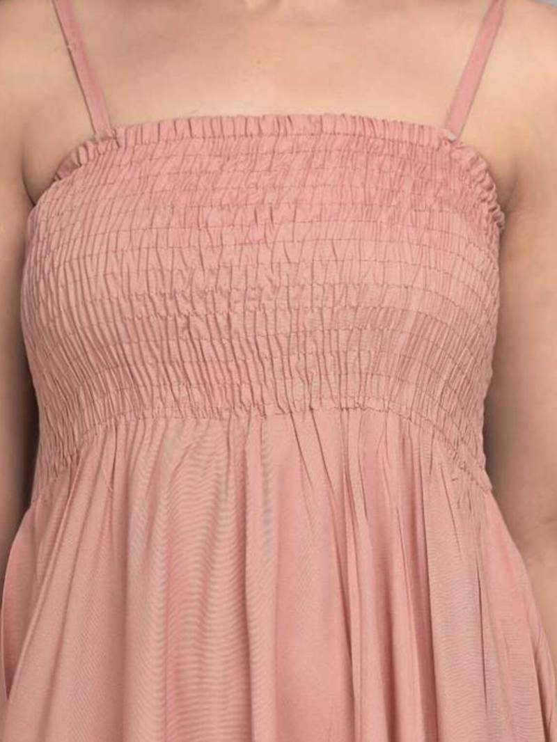 | Product Name | Peach Solid Fit And Flare Maxi Dress With Flowing Silhouette | |