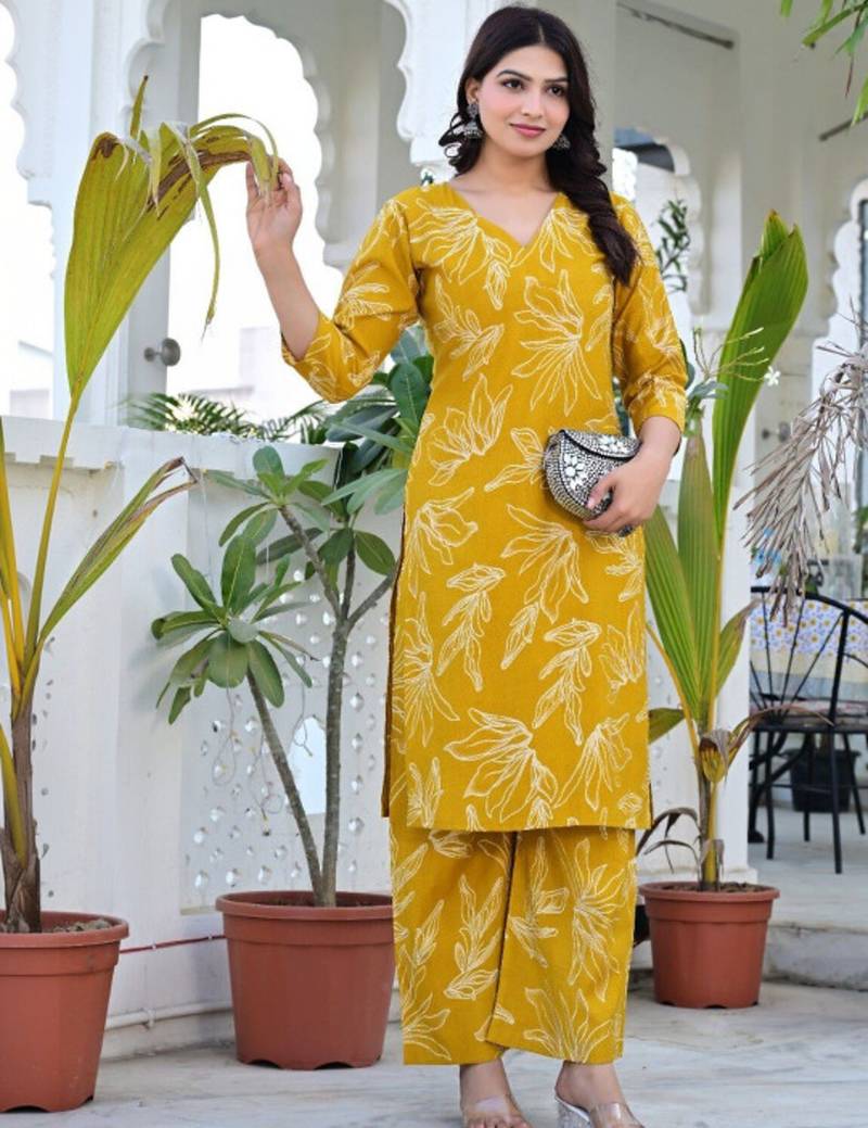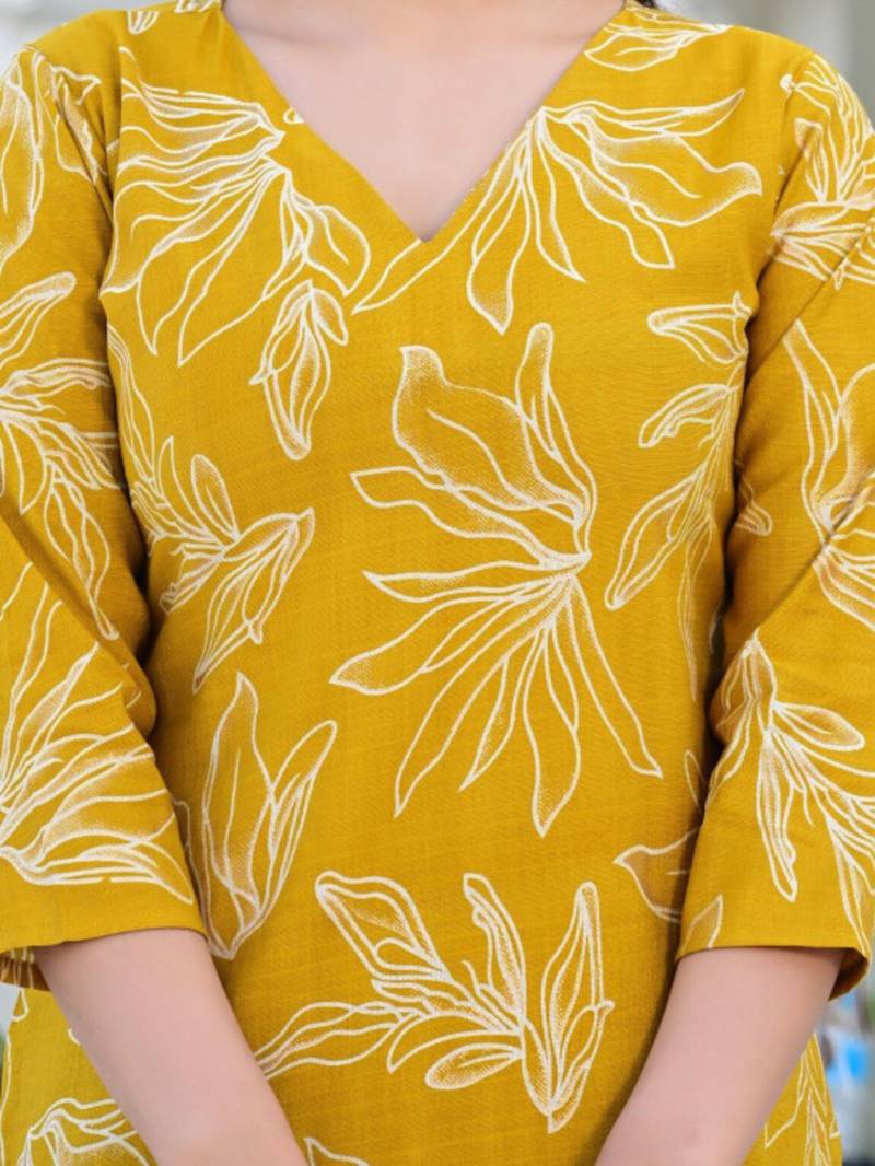 | Product Name | Yellow Floral Printed Regular Pure Cotton Kurta With Palazzos | |