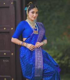 Royal blue soft silk blend banarasi jacuard work designer party wear saree with unstitched blouse piece