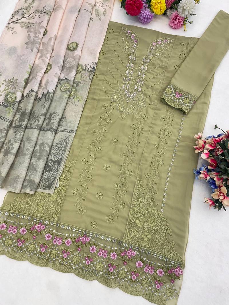 Mehendi faux georgette semi stitched suit with embroidery work