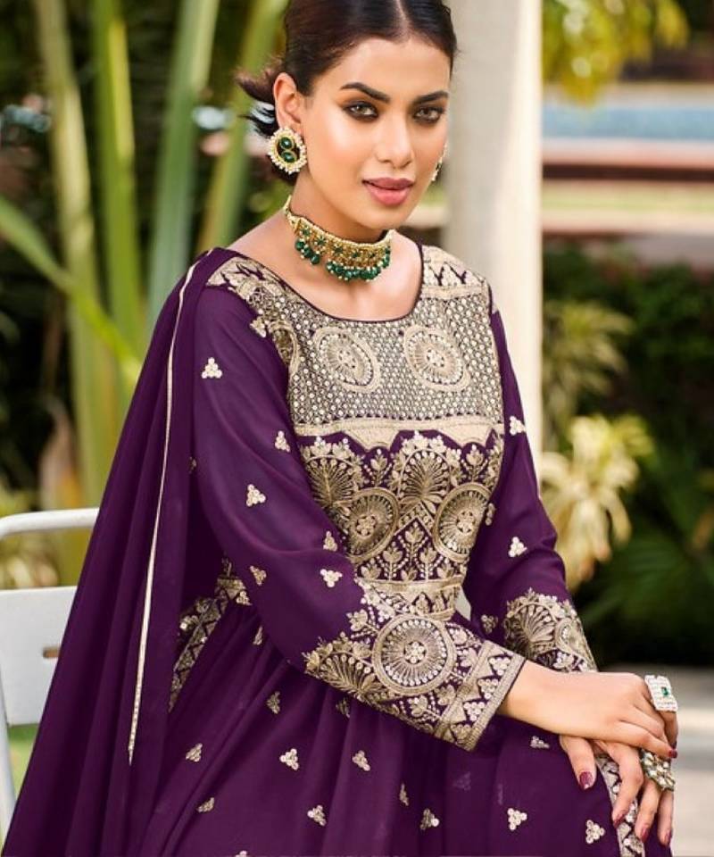 | • | Kameez | : | Color- Purple / Fabric- Faux Georgette |