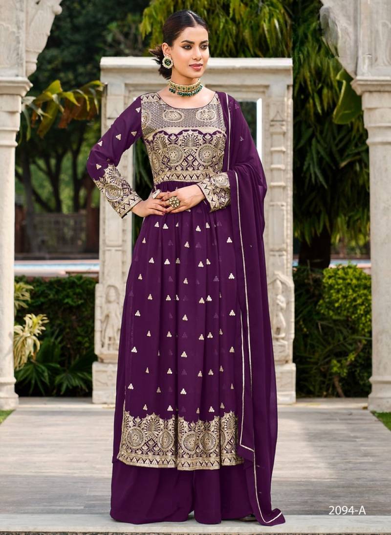 | Product Name | Purple Faux Georgette Embroidered Sequins & Mirror Work Palazzo Suit | |