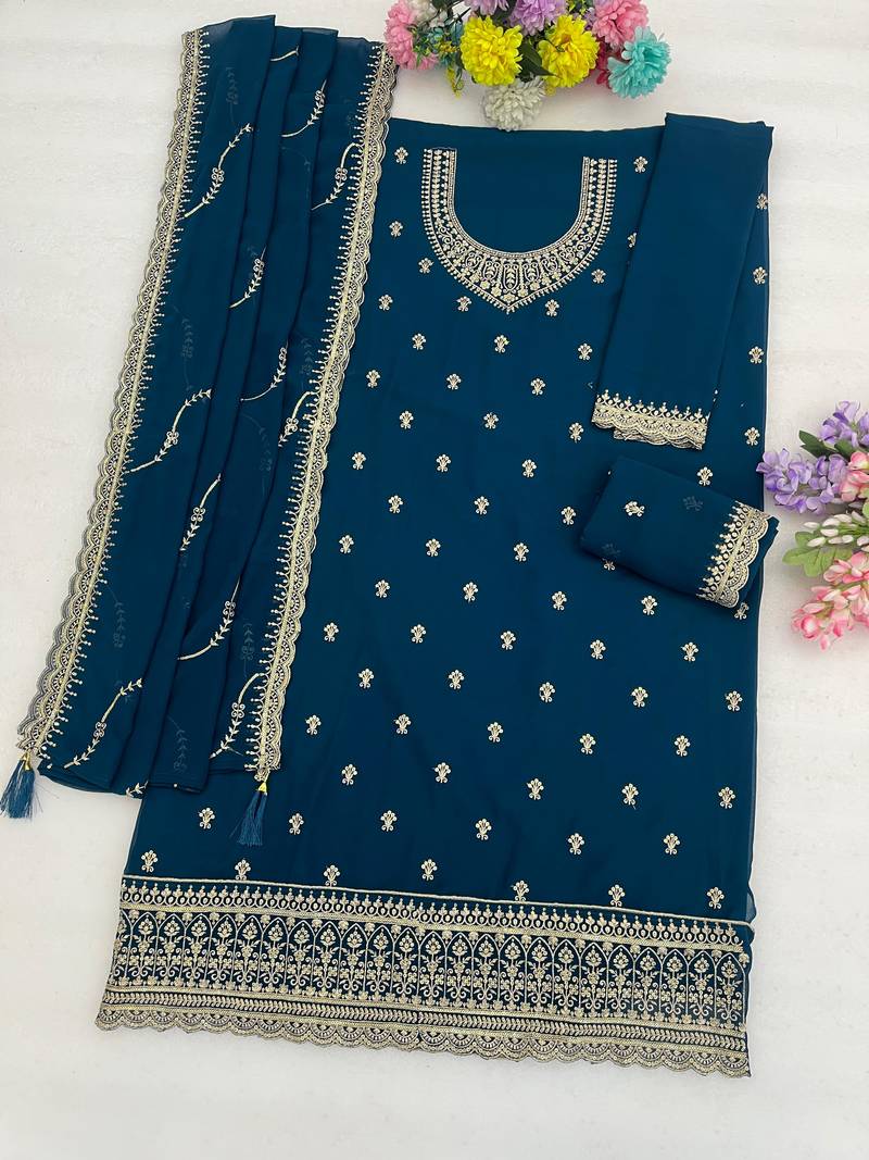 | Product Name | Teal Faux Georgette Semi Stitched Suit With Embroidery Work | |