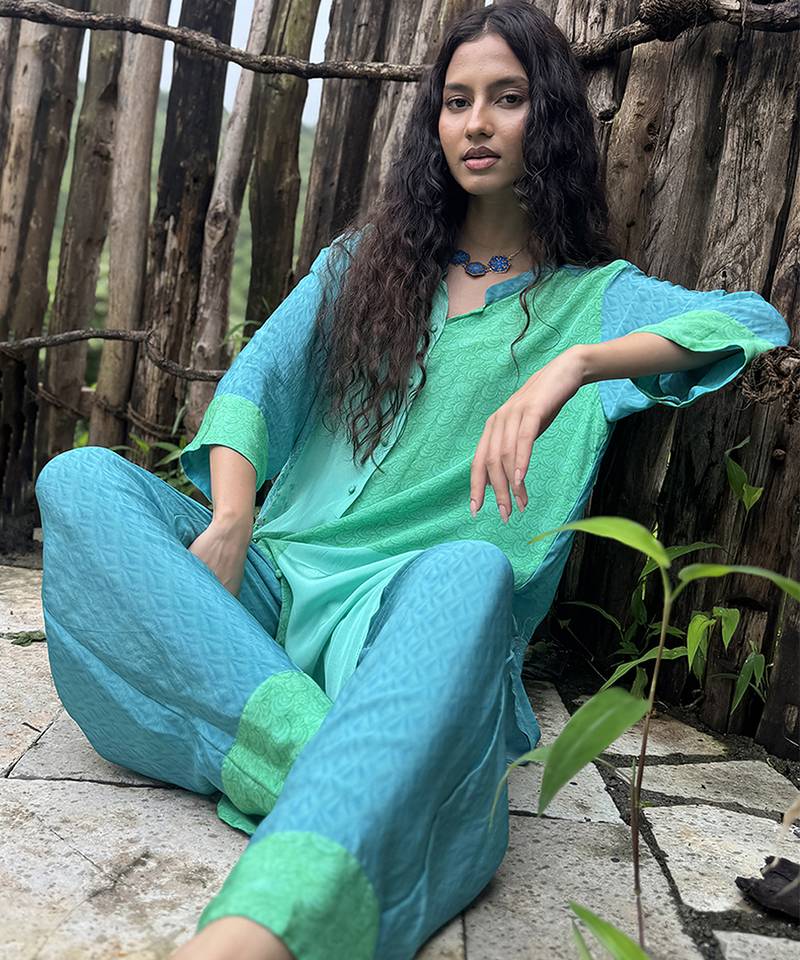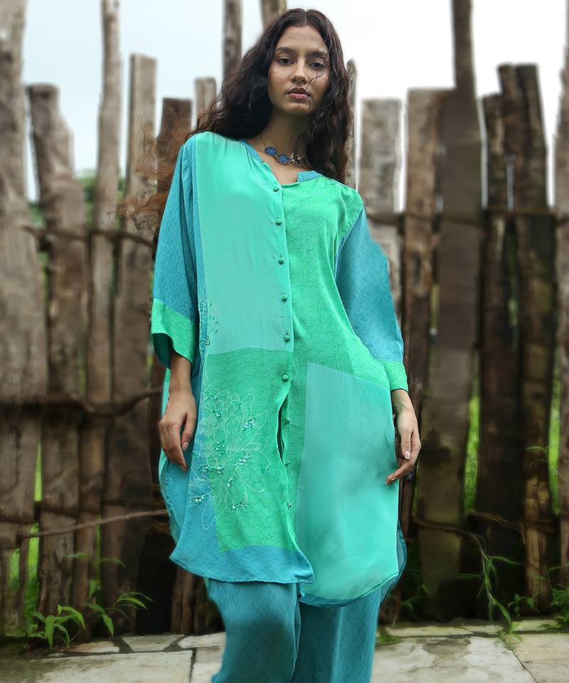 | Product Name | Blue Embroidered Crepe Co Ord Set | |