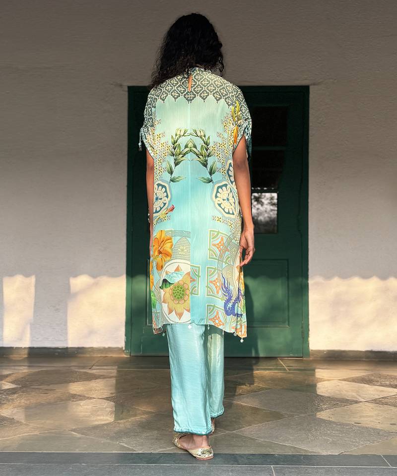 Blue printed crepe kurta set