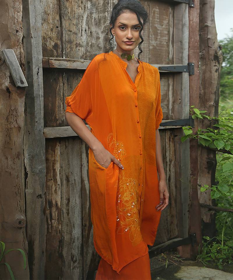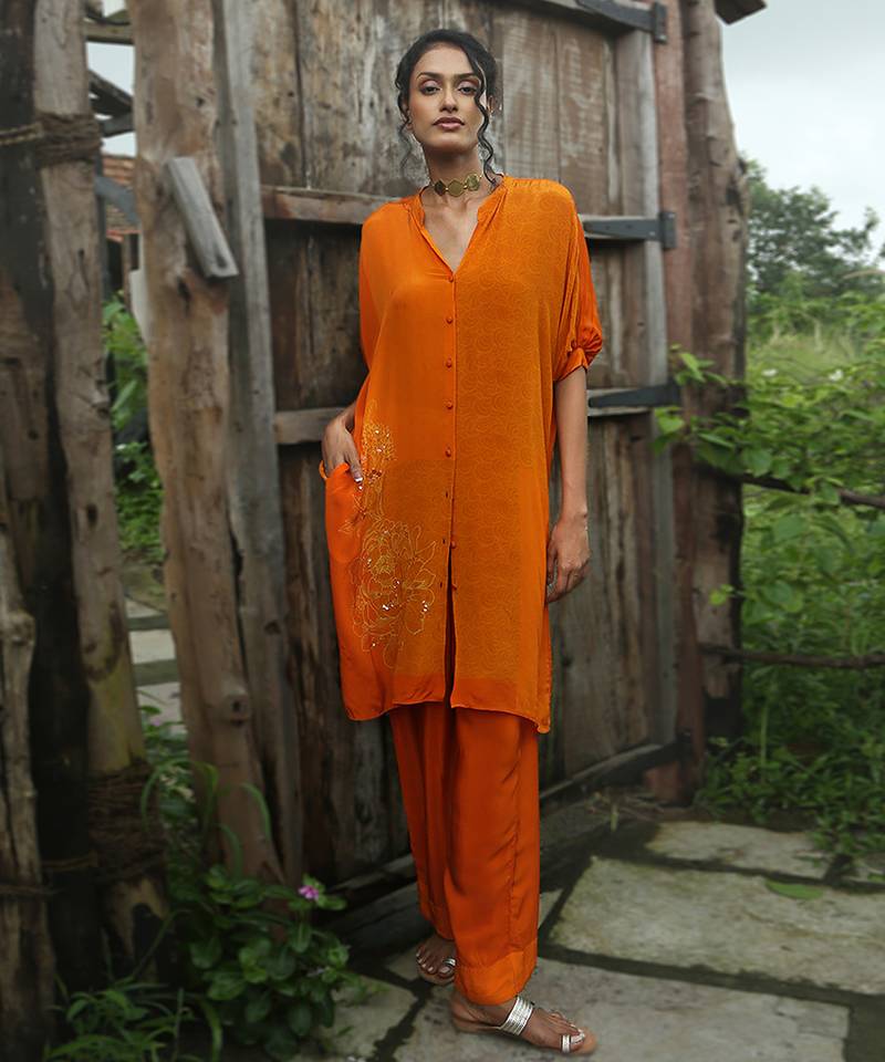 | Product Name | Orange Embroidered Crepe Co Ord Set | |
