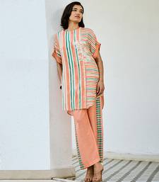Peach printed linen kurta set