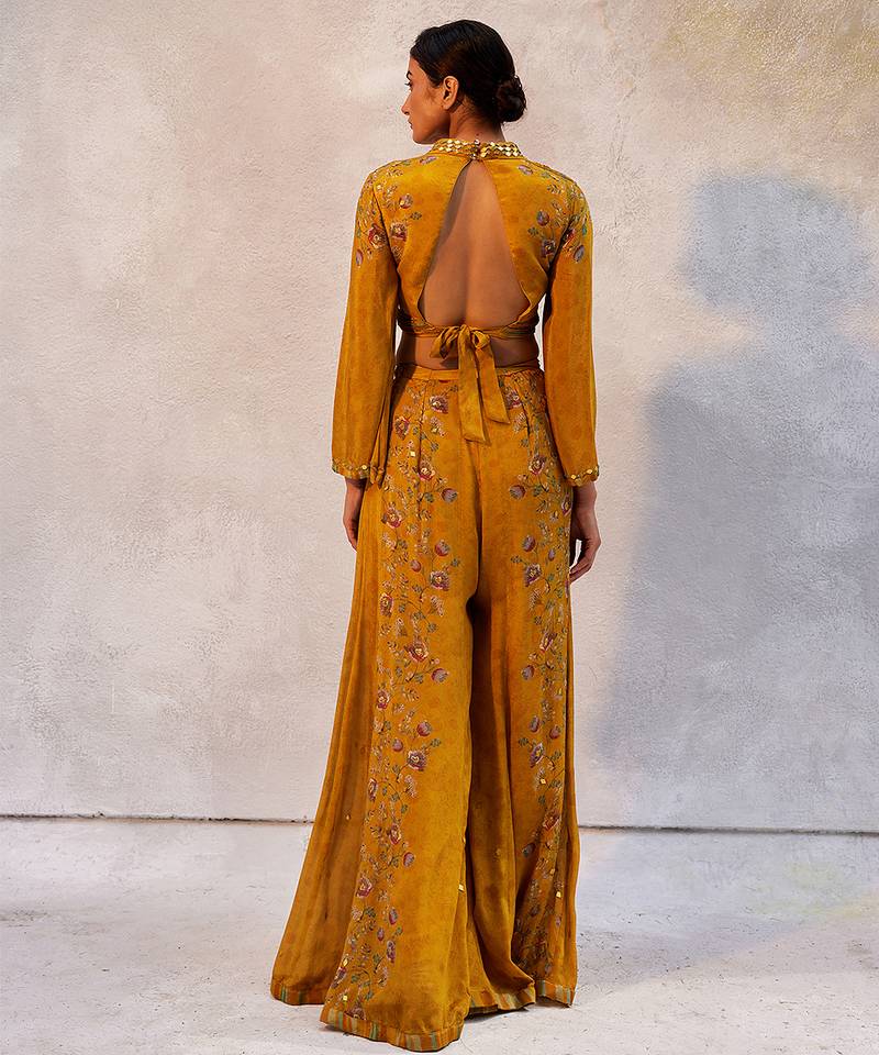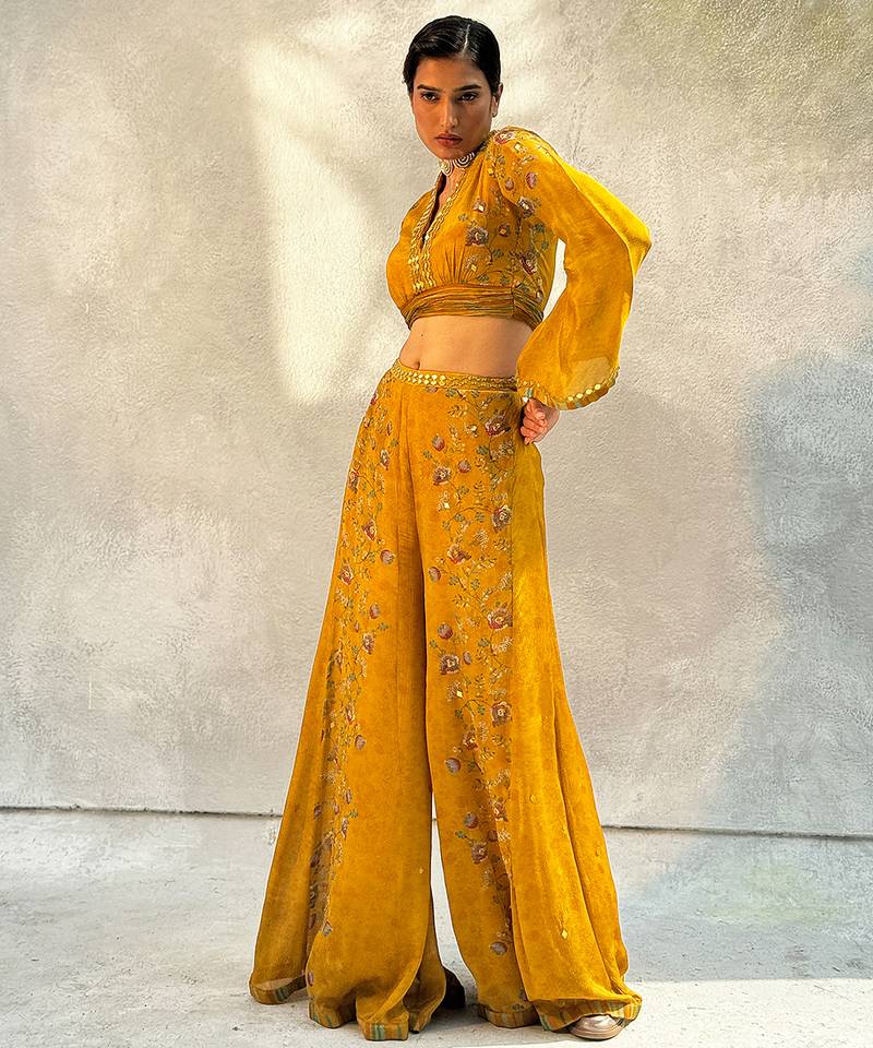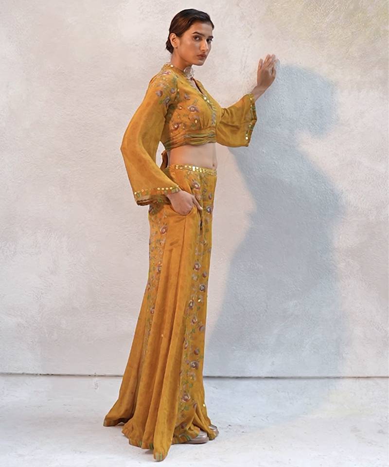 Yellow printed chiffon co ord set