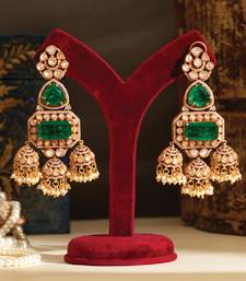 | Product Description | Crafted With Elegance, These Gold Plated Jhumkas Feature Beautiful Green Stones That Add A Refreshing Charm. The Traditional Design Combined With Fine Detailing Makes Them Ideal For Festive Wear. A Perfect Accessory To Elevate Your Ethnic Outfits With Grace And Timeless Appeal.