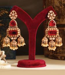 | Product Description | These Gold Plated Jhumkas With Red Stones Showcase Traditional Charm With A Bold And Elegant Touch. The Intricate Detailing And Vibrant Tones Make Them Perfect For Festive Occasions. Lightweight And Stylish, They Add Movement And Grace, Enhancing Your Ethnic Look Beautifully.