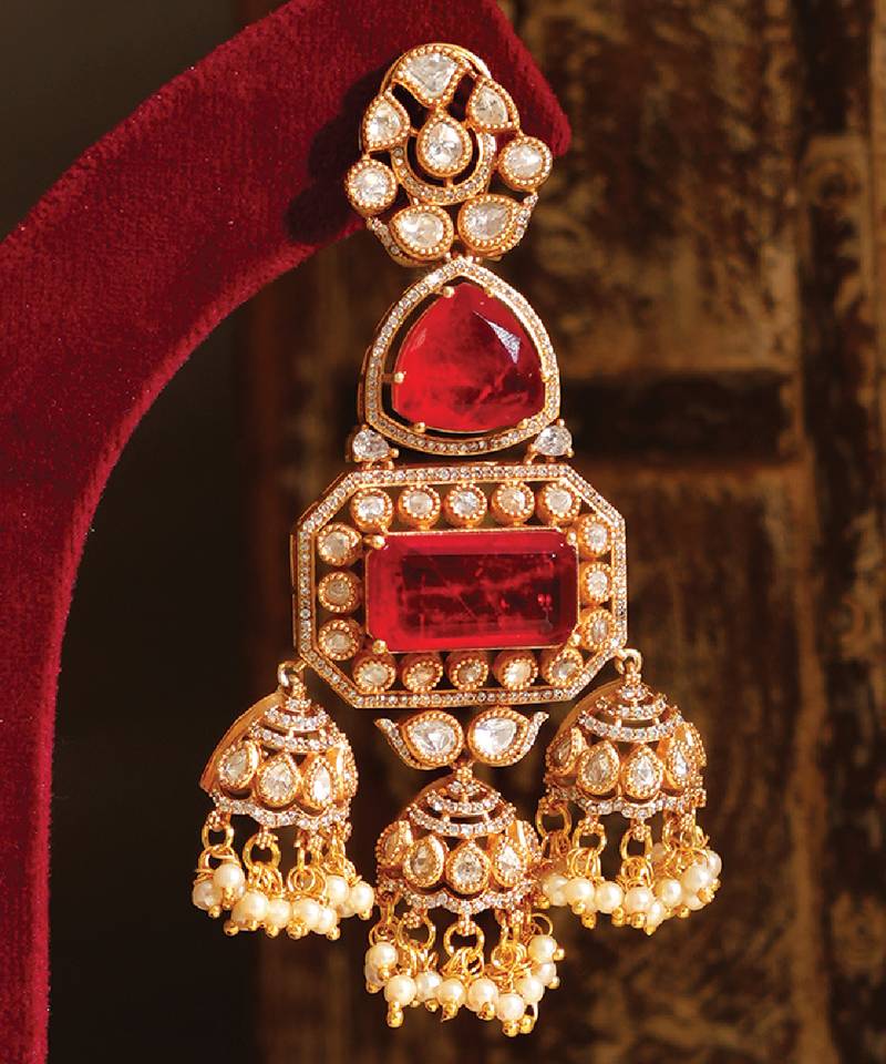 | Product Name | Gold Plated Red Stones Jhumkas | |