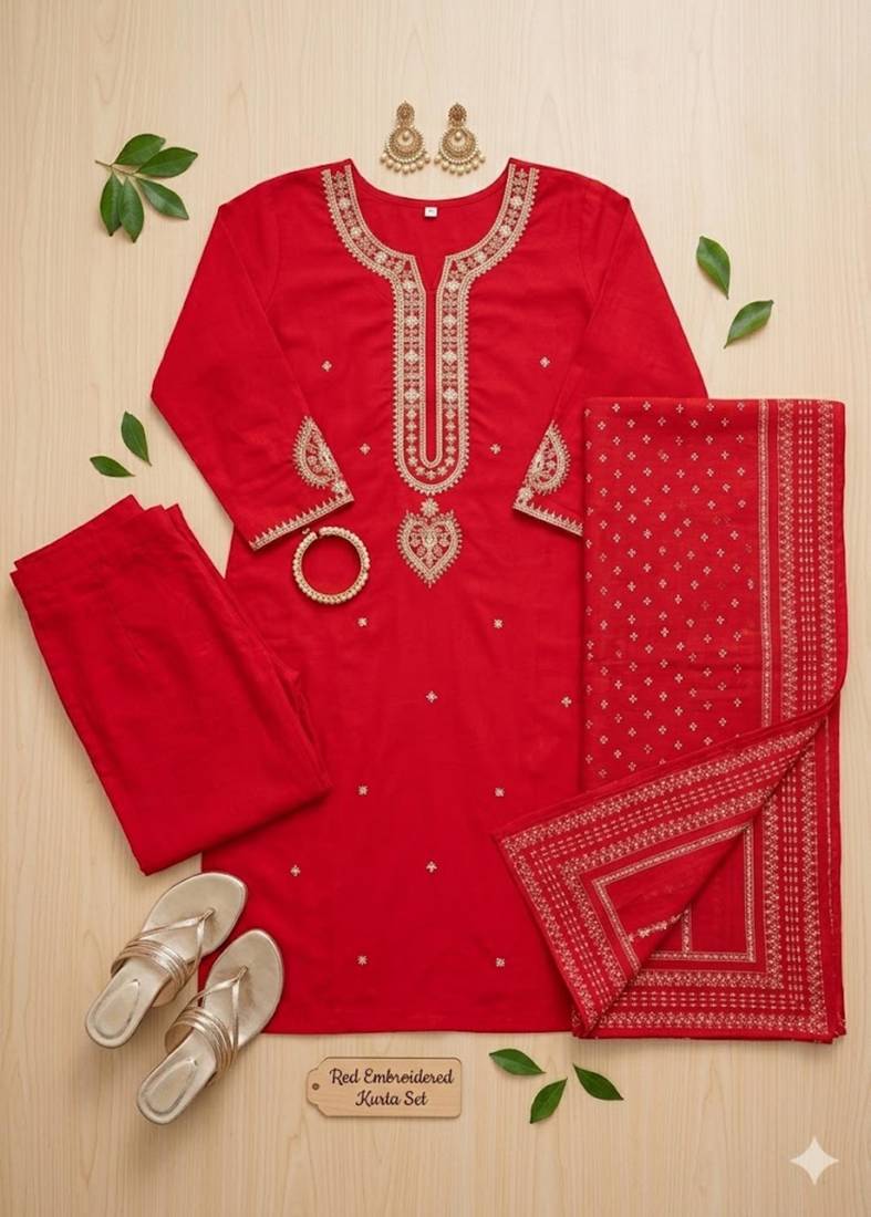 | Product Description | This Red Kurta Features Intricate Gold Thread Embroidery That Highlights The Neckline And Front Panel Beautifully. Designed For Elegance And Comfort, The Soft Fabric Drapes Effortlessly While Adding A Refined Traditional Touch. Perfect For Festive Gatherings, Cultural Events, Or Special Occasions, This Kurta Blends Classic Design With Modern Sophistication. |