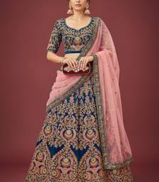Blue thread zari dori and sequins embroiderey work velvet semi stitched lehenga choli