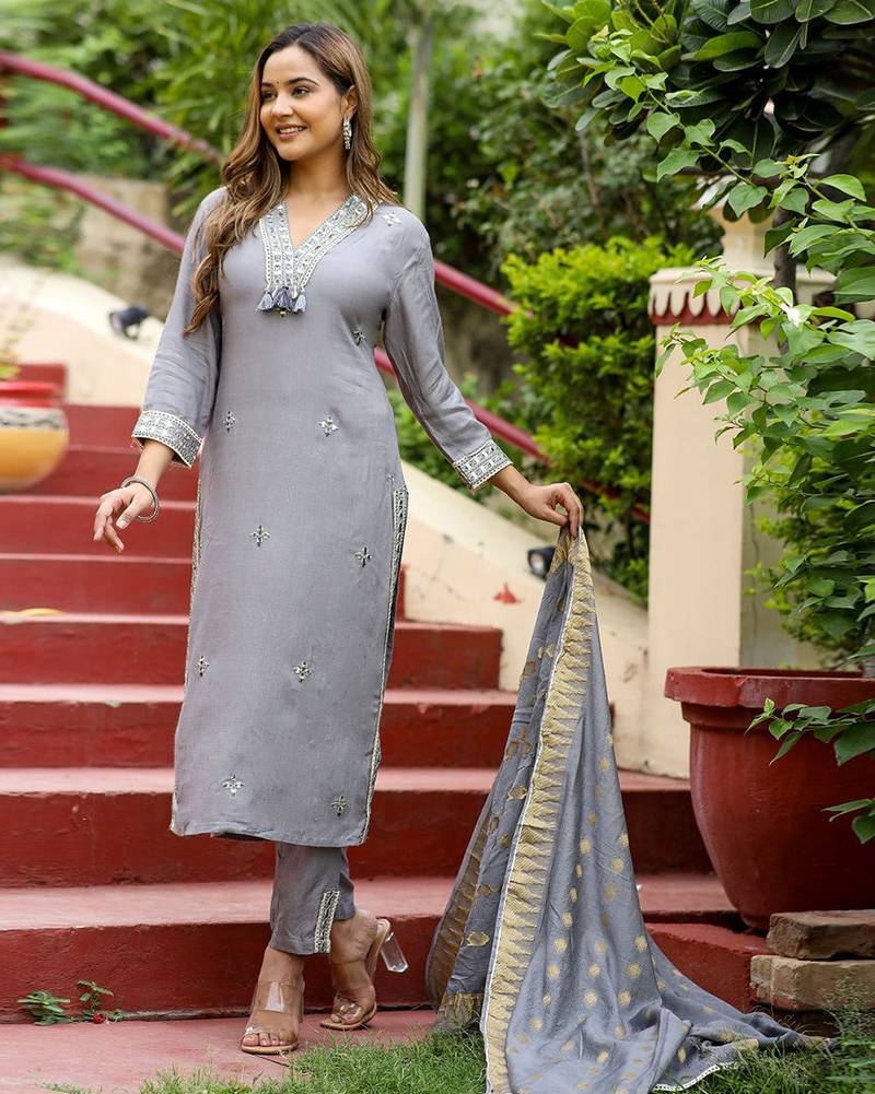 | • | Dupatta | : | Color- Grey / Fabric- Viscose Rayon |