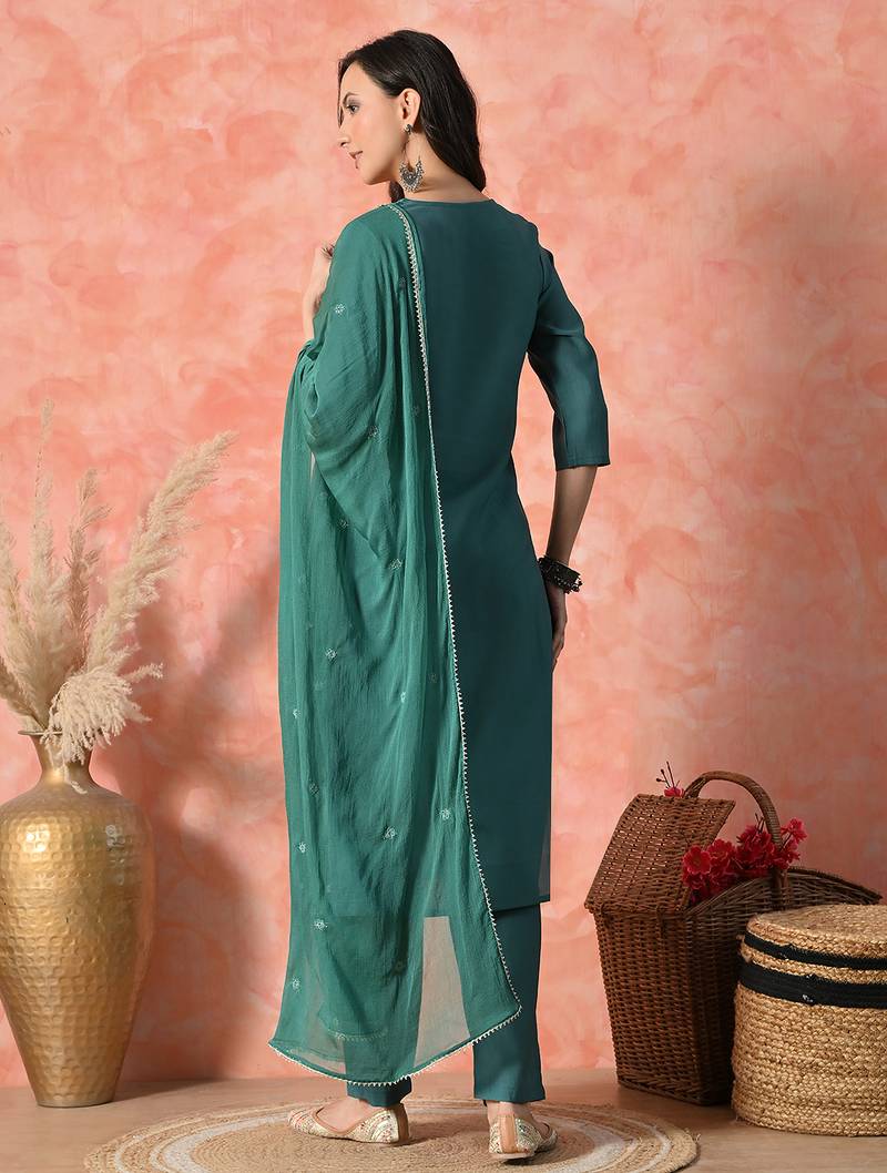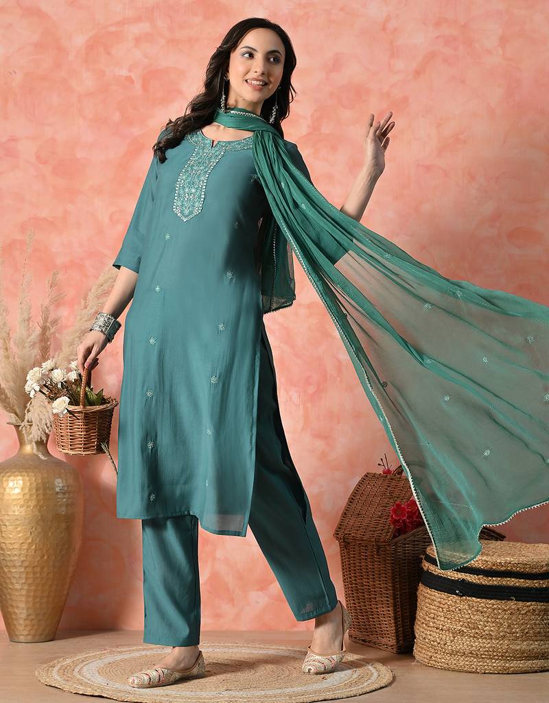 | Product Name | Women Ethnic Motifs Embroidered Regular Thread Work Kurta With Trousers & With Dupatta | |