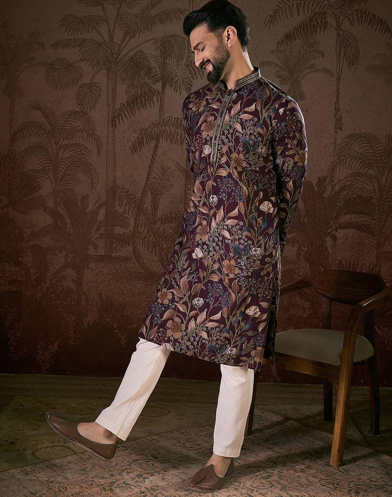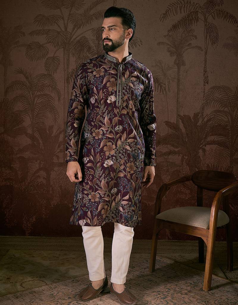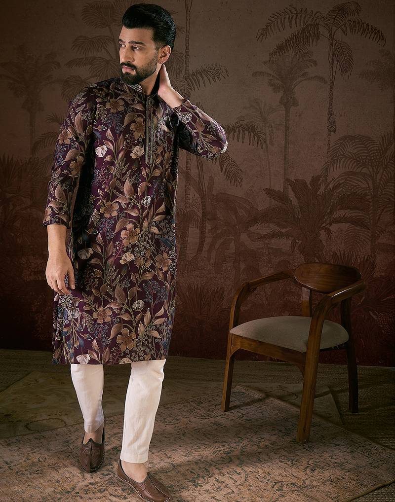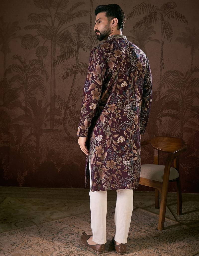 | Product Name | Men Purple Silk Blend Floral Printed Straight Kurta With Trouser | |