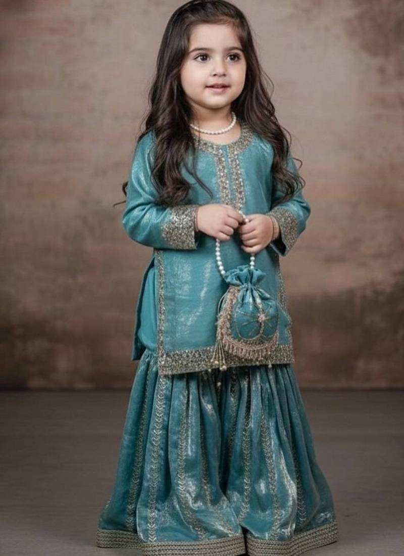 | Product Name | Designer Party Wear Heavy Silk Kids Top Sharara & Dupatta Set | |